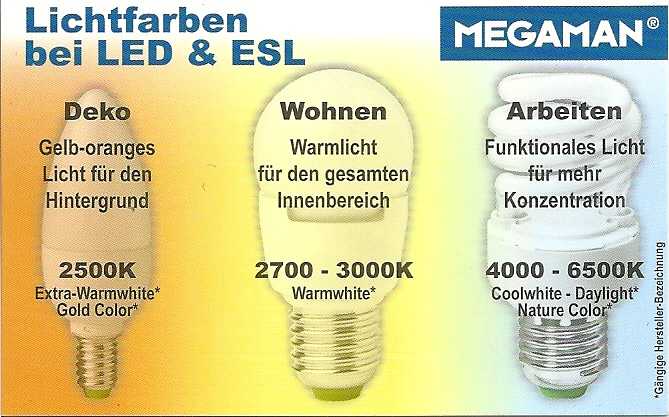 Siehe Tabellen der Fa. Megaman:
